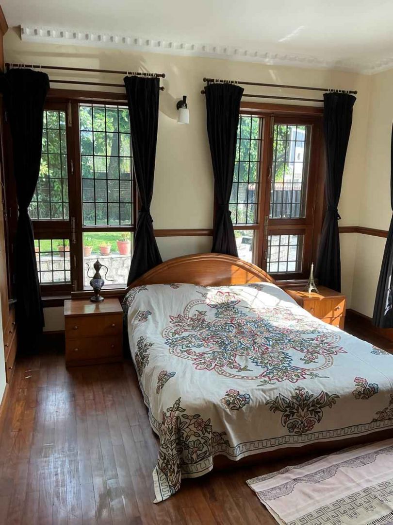 house on rent at budhanilkantha near park village hotel 4 beds, one attach bathroom, 3 bathrooms, dining, living, kitchen, store, guard , land 800 square meters, lately rented by Australian embassy. Rent $3000. Earthquake resistance approved FHS522R