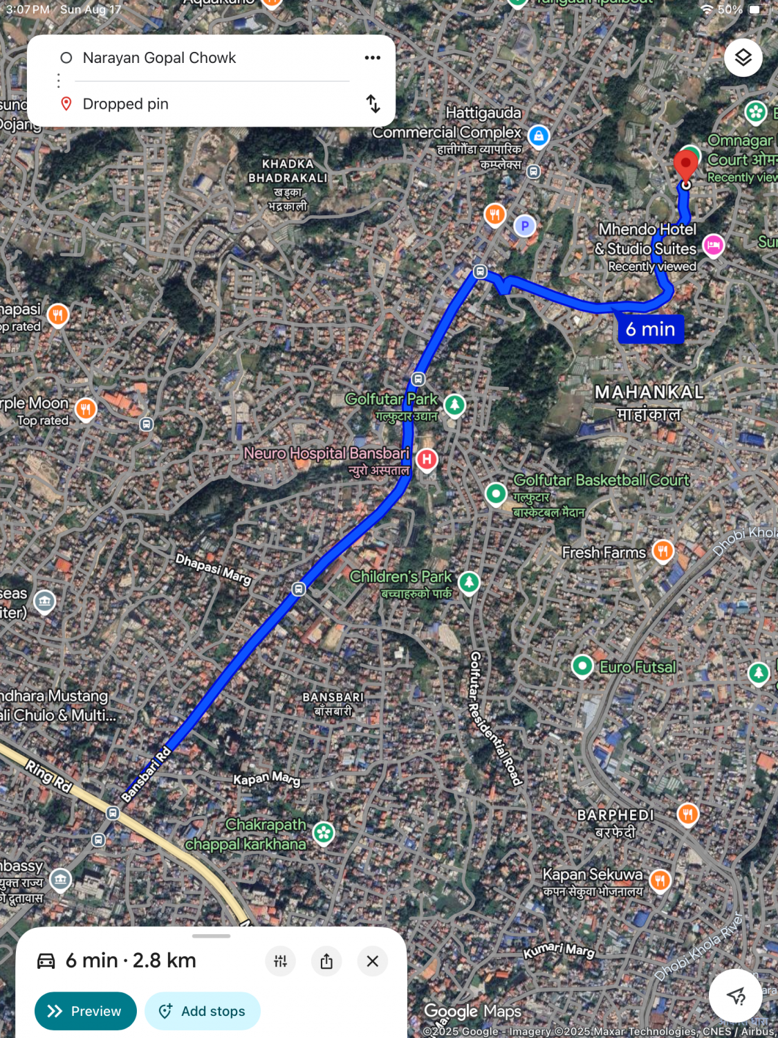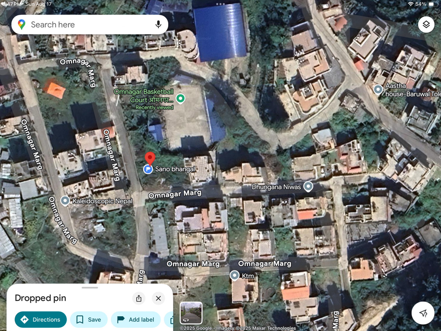 2.7 km from Narayangal chowk, 800 meter from Galfutar marg, adjoining to bhangal basketball court. Located at om nagar marg.