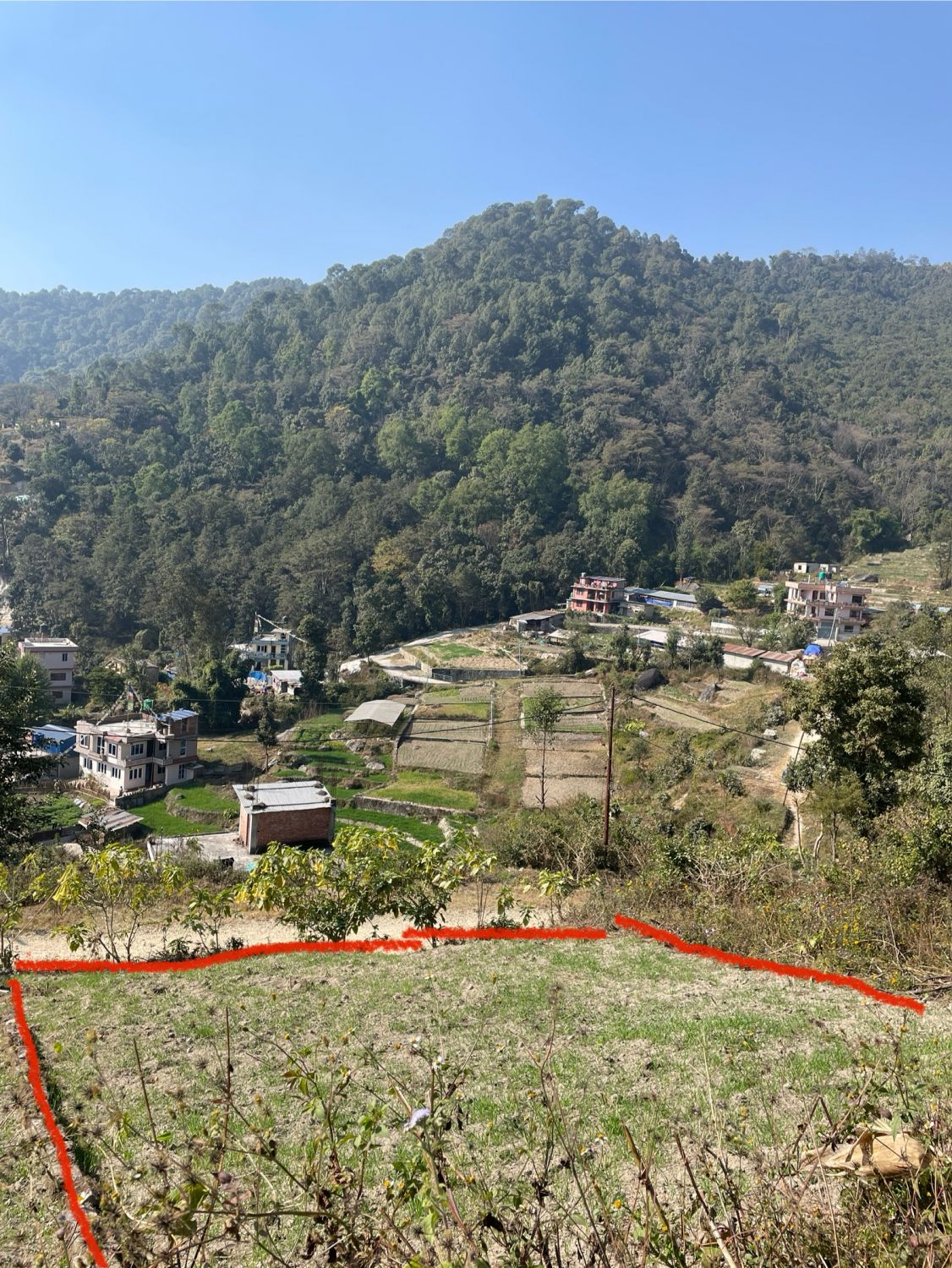 4 ana 1 paisa land on sale facing east in a high ground area with clean air, clean water and quite peaceful area in Suntakhan Gokarneshwor. Bus stop nearby, worth looking the land once. Land Naksa ko green highlight is the land and yellow highlights are roads. Front side road 24 feets and back side road 13 feets, both sides got road access.
